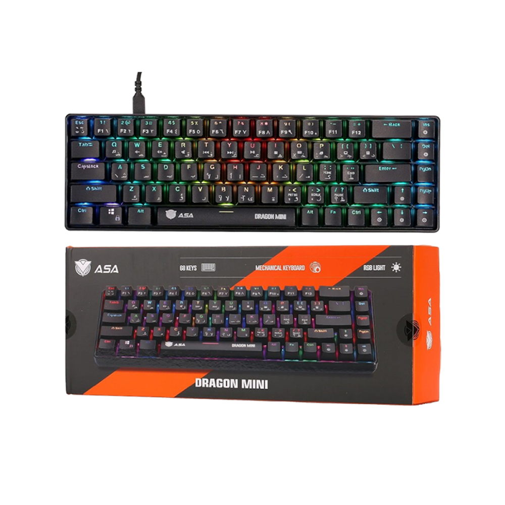 🔥 كيبورد ميكانيكي صغير ASA من Dragon – مفاتيح زرقاء وصوت كليكي احترافي ارتقِ بتجربة الكتابة والألعاب مع كيبورد ASA الميكانيكي صغير الحجم من Dragon، المجهز بـ 68 مفتاحًا ميكانيكيًا بتصميم بدون لوحة أرقام (TKL)، وإضاءة RGB مذهلة بـ 19 وضع إضاءة مختلف، ليمنحك أداءً فائقًا وشكلًا عصريًا على مكتبك.